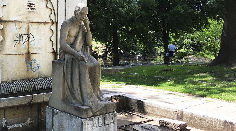 Completaron el cuadro dos leones, llevados a cabo por el escultor Aurelio Luigi Ramacciotti, ubicados unos metros adelante de la estatua del músico. El monumento está inspirado en la Alhambra, dado que Falla vivió parte de su vida en Granada, y este detalle salta a la vista en el muro que se levanta al fondo de la obra, que posee un arco árabe, con agua que brota y cae a un estanque.
