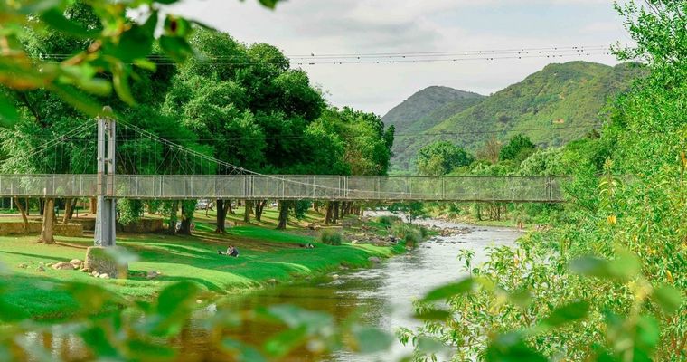 El puente colgante de Santa Rosa de Calamuchita tiene una linda historia detrás: fue construido por pedido de los vecinos de Villa Santarelli que se quedaban sin poder acceder al centro en días de crecidas.