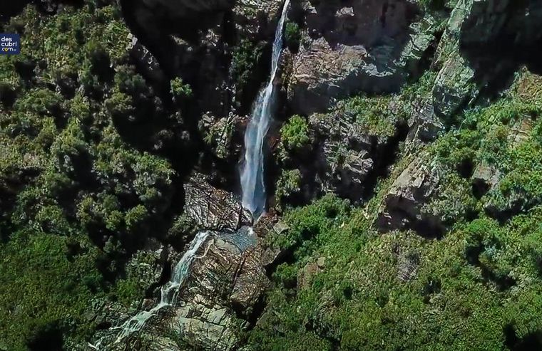 Tiene más de 100 metros de alto y se encuentra a la vera de la ruta a Traslasierra por Pampa de Achala.