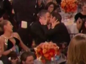 Los actores Ryan Reynolds y Andrew Garfield protagonizaron el beso de la noche en la entrega de los premios Globo de Oro gracias a una cámara que captó el insólito momento.