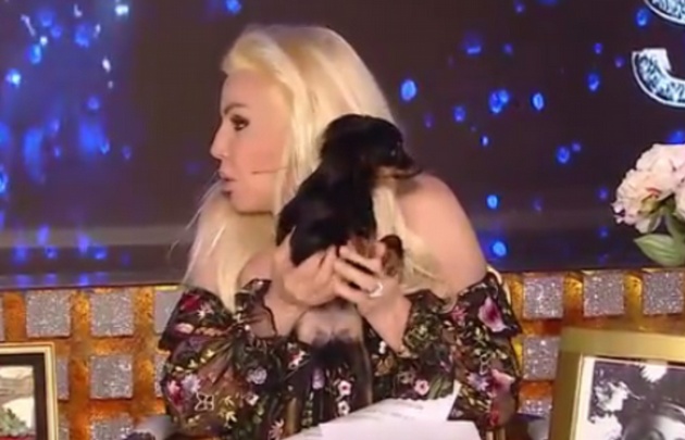 Susana Giménez estaba haciendo la publicidad de un alimento para animales en su programa e inesperadamente fue sorprendida por un cachorro que sostenía en sus manos.