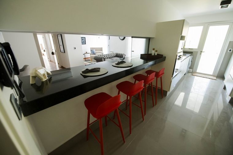 - Algunas tipologías cuentan con el diseño de cocina integrada, otros con una barra tipo desayunador, con un sistema tipo 'pasaplato', para integrar o cerrar la cocina al espacio del living, según preferencia.