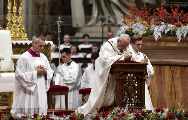 La celebración había iniciado pasadas las 21 locales con la "Kalenda", el canto en latín que en la tradición católica convoca al anuncio de la Navidad, mientras miles de personas seguían la celebración en pantallas gigantes desde la Plaza San Pedro
