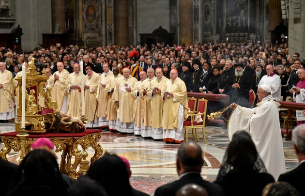 "En los pasos de José y María se esconden tantos pasos. Vemos las huellas de familias enteras que hoy se ven obligadas a marchar. Vemos las huellas de millones de personas que no eligen irse, sino que son obligados a separarse de los suyos, que son expulsados de su tierra", planteó Francisco ante unas 10.000 personas que llenaron la basílica vaticana.