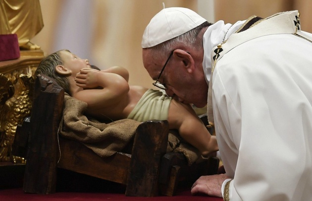 "Conmovidos por la alegría del don, pequeño Niño de Belén, te pedimos que tu llanto despierte nuestra indiferencia, abra nuestros ojos ante el que sufre", afirmó el pontífice argentino.