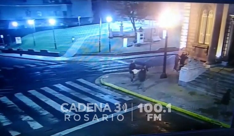 Video. El momento en el que pintaban "humo y plomo" en la Municipalidad de Rosario.