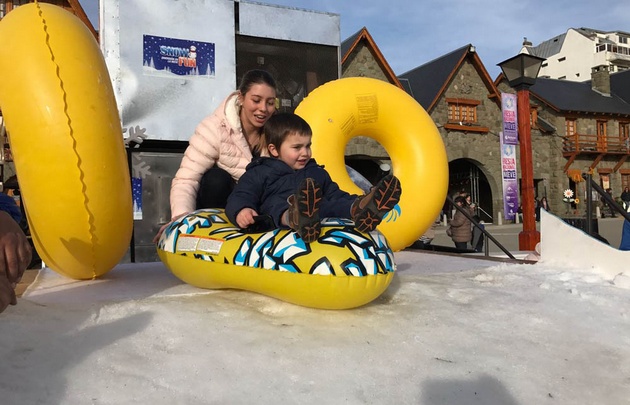 El lugar simula una montaña de nieve con pinos naturales y pendientes. Allí los niños pueden armar muñecos y arrojarse por los toboganes con inflables. Mirá las fotos.
