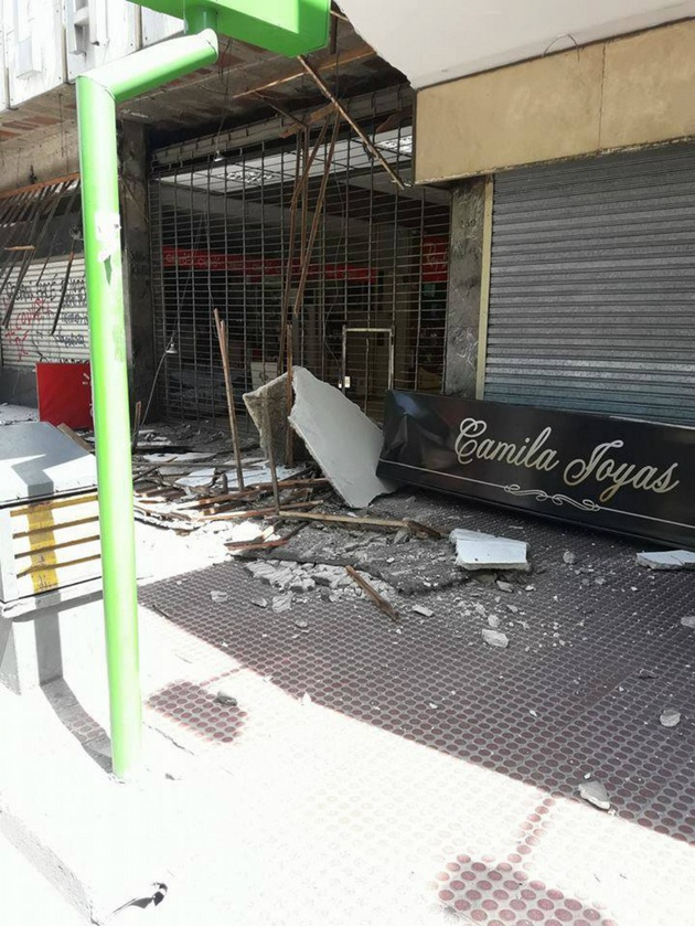 Por motivos que se desconocen, alrededor de las 15 una cantidad considerable de mampostería se vino abajo en la salida por avenida Colón de ese paseo comercial, que estaba cerrado. No hubo heridos.
