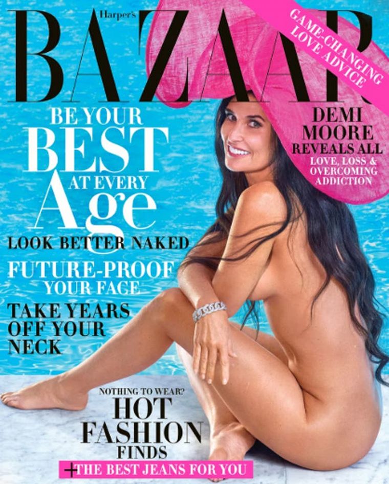 Antes de la publicación de su libro biográfico, Demi Moore, de 56 años, sorprendió al posar completamente desnuda para la tapa de la revista Bazaar.