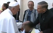 Francisco se acercó a un muchacho y el sacerdote que le acompañaba se lo presentó, mientras le decía algunas palabras, que no se logran escuchar en el vídeo emitido por la TV de los obispos.