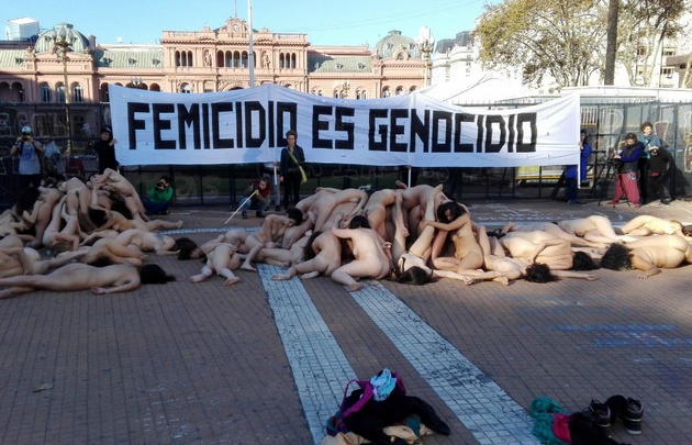 Un grupo de mujeres se desnudó ayer frente a la Casa Rosada, el palacio de Tribunales y el Congreso de la Nación bajo la consigna “Femicidio es Genocidio” para exigir medidas contra la violencia de género.