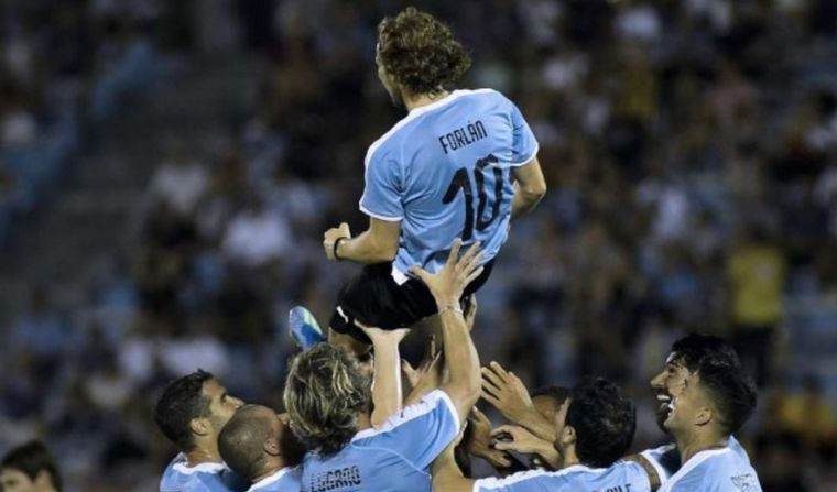 El entrenador de Uruguay fue Oscar Washington Tabarez, también el DT en Sudáfrica, Mundial en el cual Forlán fue elegido como mejor jugador luego de que su equipo cayó en semifinales.