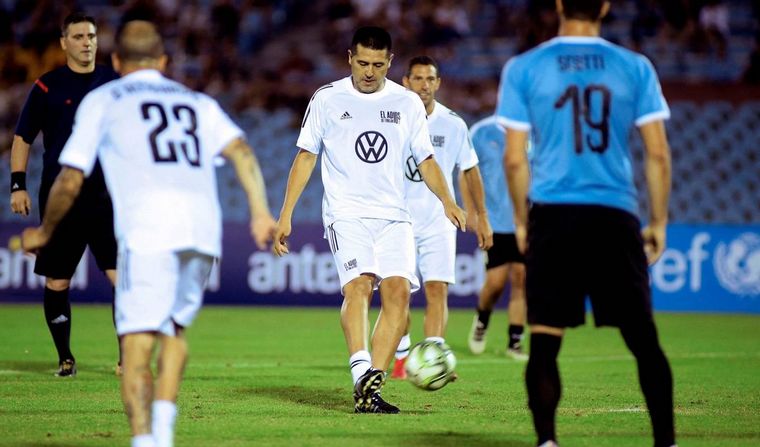 Riquelme, intacto con la pelota en la despedida de Forlán
