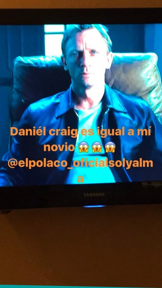 En las últimas horas publicó una fotografía en su cuenta de Instagram del actor de Hollywood Daniel Craig con una leyenda que dice: "Daniel Craig es igual a mi novio, @elpolaco_oficialsolyalma".