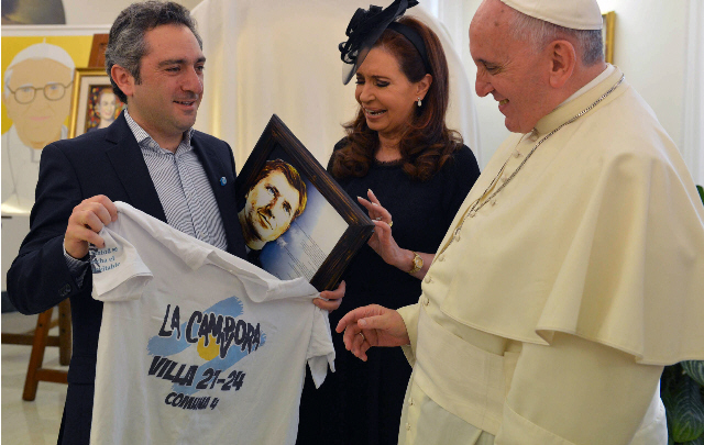El Cuervo Larroque le regaló la remera de La Cámpora al Papa