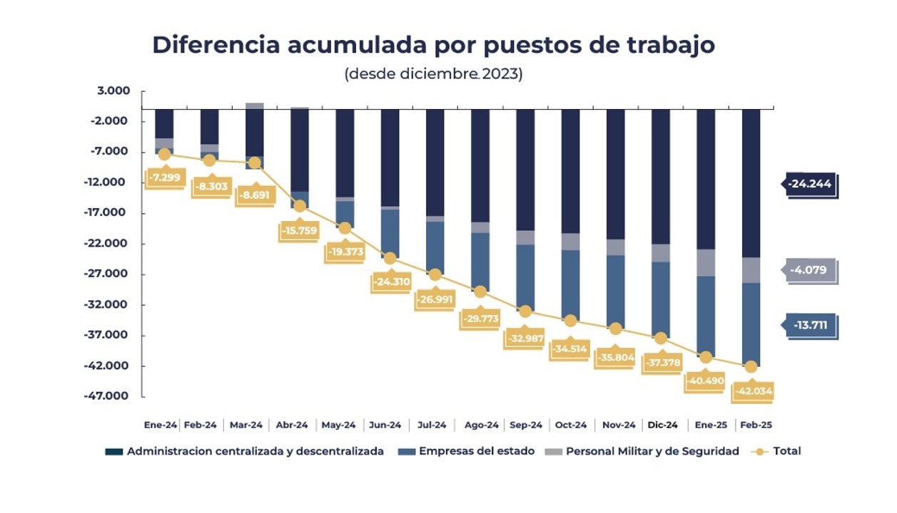 El informe del ministerio detalla que, de los empleados que dejaron su cargo, 24.244 pertenecen a la administración central y descentralizada, 13.711 a empresas estatales y 4.079 a las fuerzas armadas y de seguridad. Este amplio espectro de despidos pone de manifiesto un cambio significativo en la gestión pública.