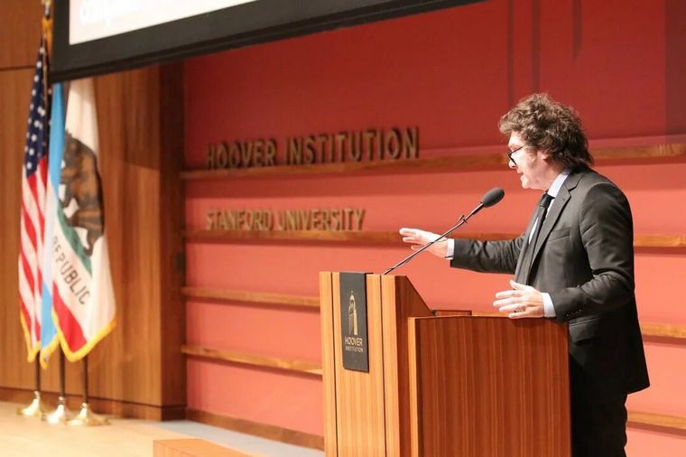 Milei habló durante 50 minutos sobre capitalismo, regulación de monopolios y su impacto en el crecimiento económico en el Instituto Hoover de Stanford.