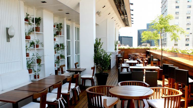 Ubicado en la intersección de la peatonal Florida y la Plaza San Martín, su terraza invita a disfrutar el sol colándose entre los edificios en el horario del atardecer.