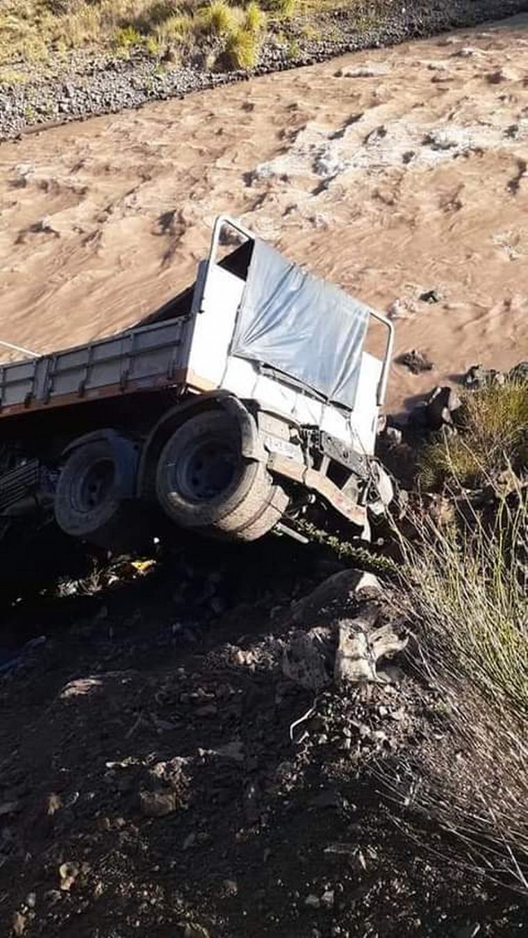Desbarrancó un camión en Potrerillos: el chofer se salvó