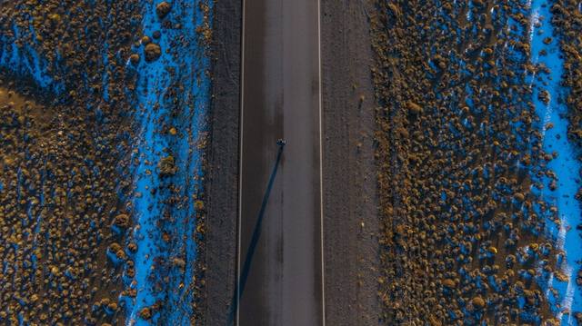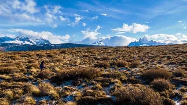 A través de esta comparación se ve el contraste entre la inmensidad del paisaje y lo pequeño que se siente el turista allí, aún siendo una persona de su altura.