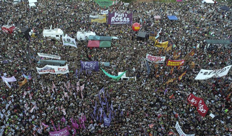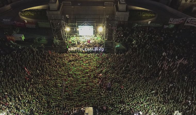 Al finalizar la lectura de esa declaración, las luces del escenario principal comenzaron a apagarse y por los altavoces se le empezó a solicitar a la multitud que comiencen a levantar sus pañuelos verdes para la fotografía, mientras que otro grupo, en las primeras filas, levantaba letras gigantes luminosas que formaban la leyenda "Aborto Legal".