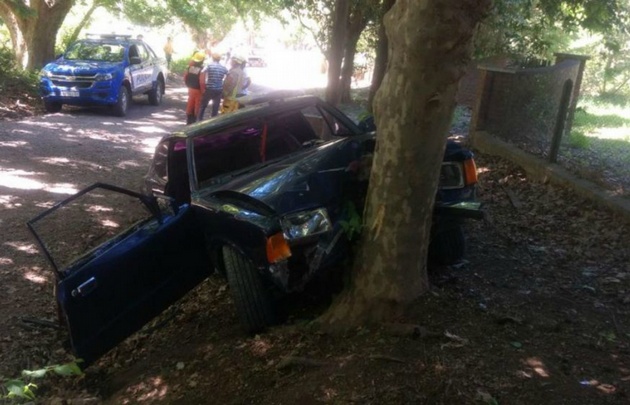La conductora perdió el control del Ford Taunus azul que conducía e impactó contra un árbol.