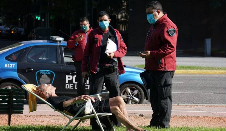 Una anciana violó la cuarentena para tomar sol en Palermo