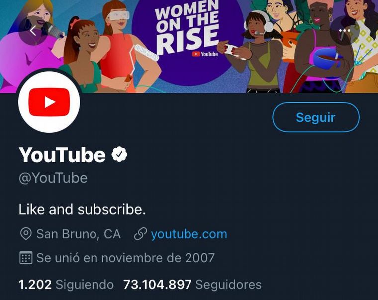 La cuenta del sitio web para compartir videos se unió a la red social en 2007 y es la única empresa en el top ten.