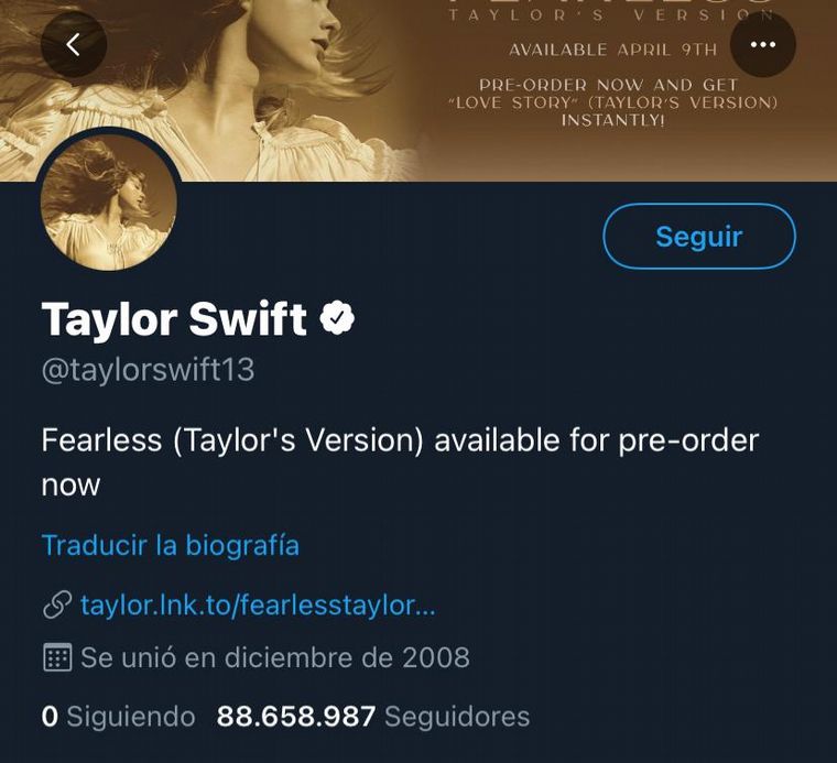 Swift se unió en 2008 y cuenta con poca actividad en la red social. Sin embargo, su gran cantidad de seguidores la posicionaron como una de las figuras más seguidas en Twitter.