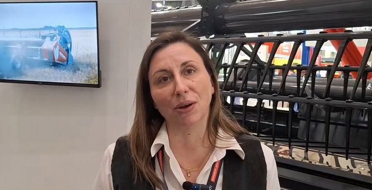 En cuanto a los productos exhibidos, Piersanti detalló la tecnología de cosecha presentada en su stand:"Trajimos un draper de 30 pies, la nueva serie F-2100 que ya está haciendo también algunos trabajos acá en Europa".