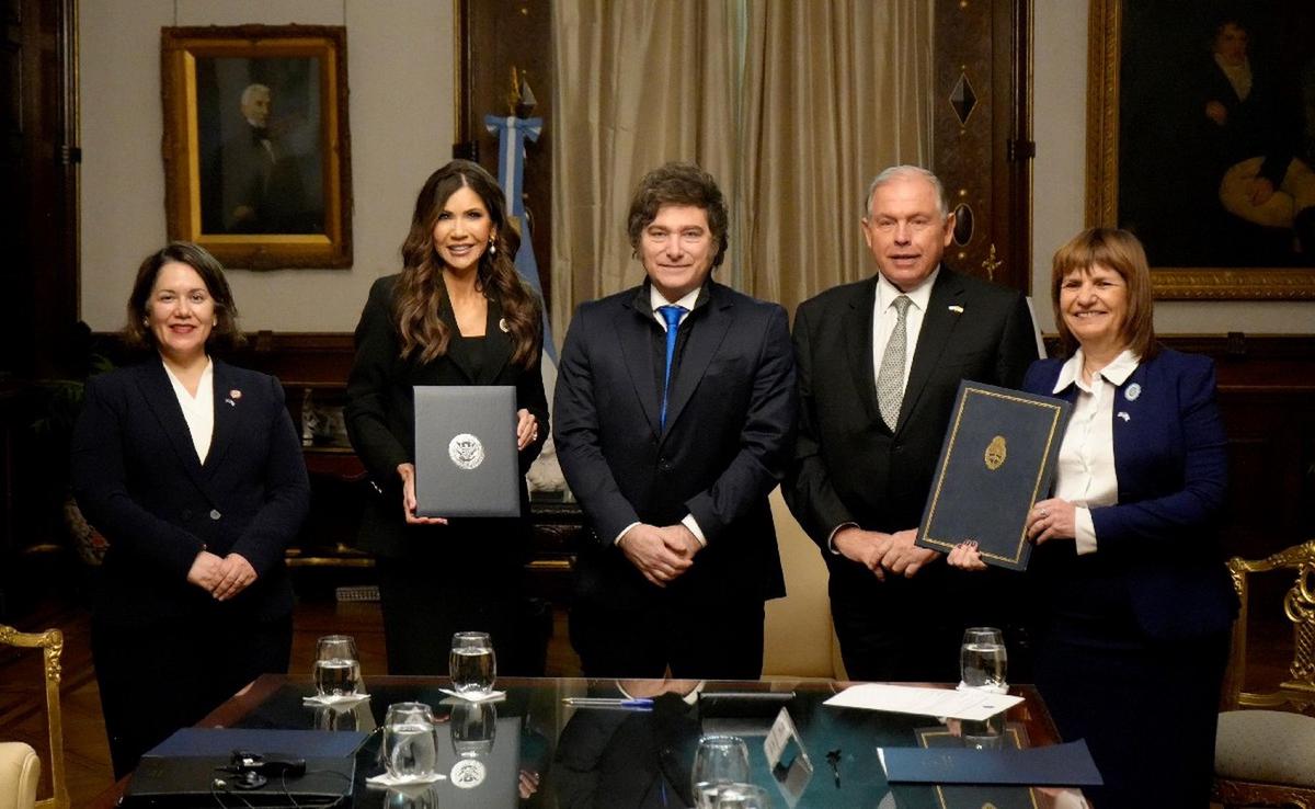 La firma de la solicitud se realizó en el marco de la visita de la Secretaria de Seguridad Nacional de Estados Unidos, Kristi Noem, quien fue recibida en la Casa Rosada por el presidente Javier Milei.