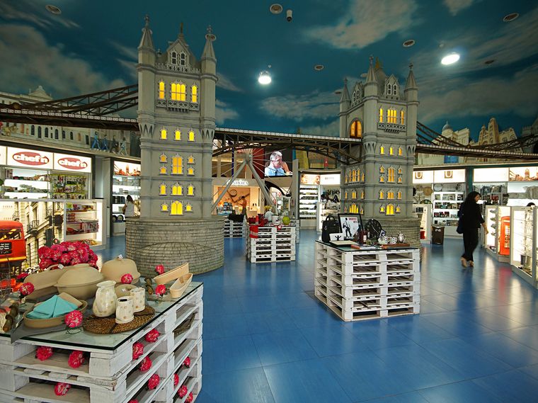 En cuanto al diseño, cada uno de los locales del Duty Free Shop busca reinterpretar destinos emblemáticos, por caso la ciudad de Londres en el acceso al paseo, los caminos de Venecia en el sector de indumentaria y las calles de París en el área de perfumería.