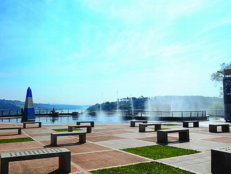 En este paso hay una feria de artesanos y un monolito con la Bandera Argentina. A lo lejos también se aprecian otros dos correspondientes a Paraguay y Brasil. Las figuras señalan la soberanía de cada nación.