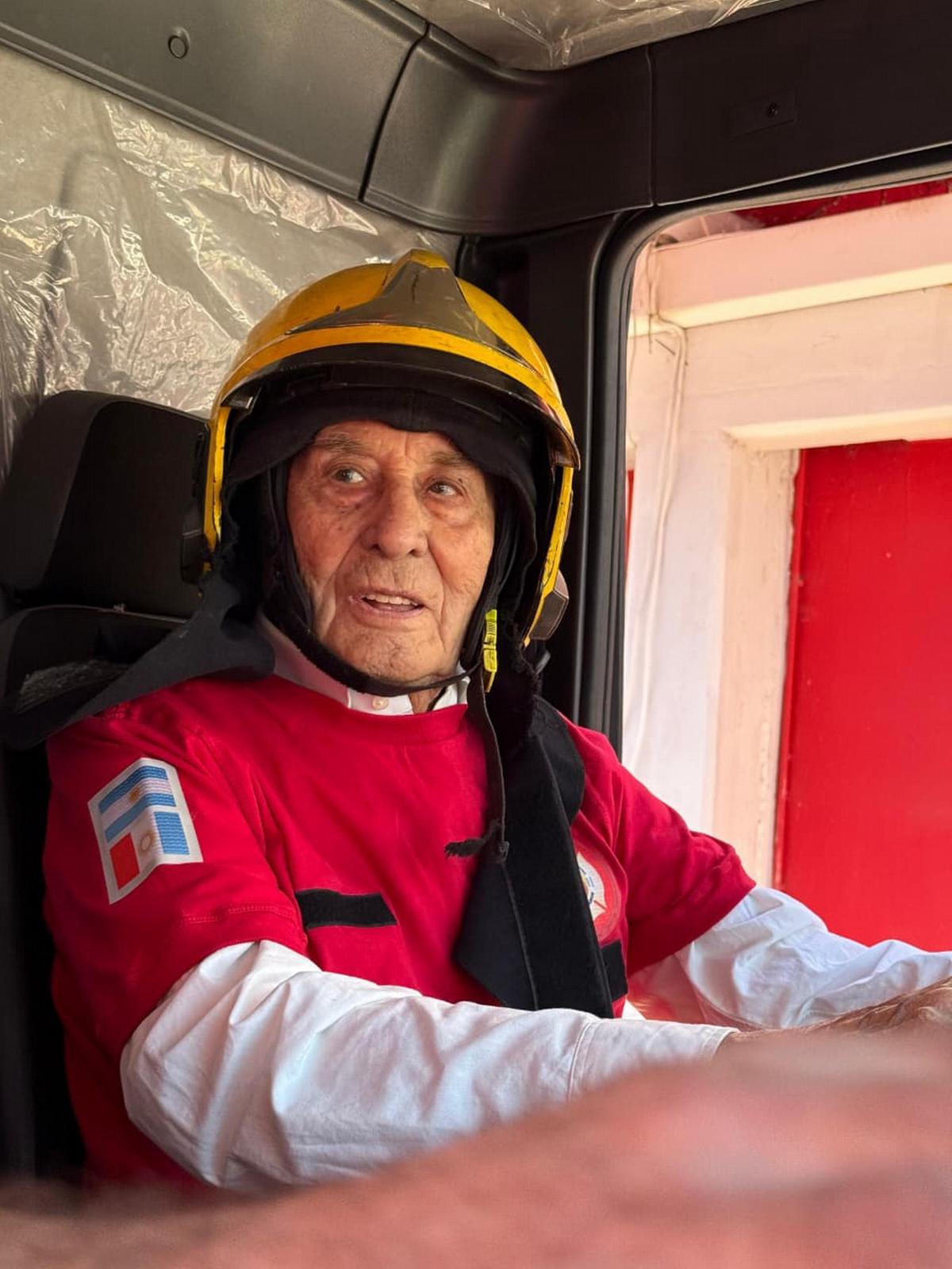 Los bomberos formaron un pasillo de honor. Molina, con paso firme, saludó uno a uno. "Me hace sentir vivo que esta gente se acuerde de mí", dijo antes de subir al vehículo. Ya en lo alto, miró a la multitud y agregó: "Estoy orgulloso de que me tengan en cuenta a pesar de los 90 años. Nunca pensé que me recordarían así".