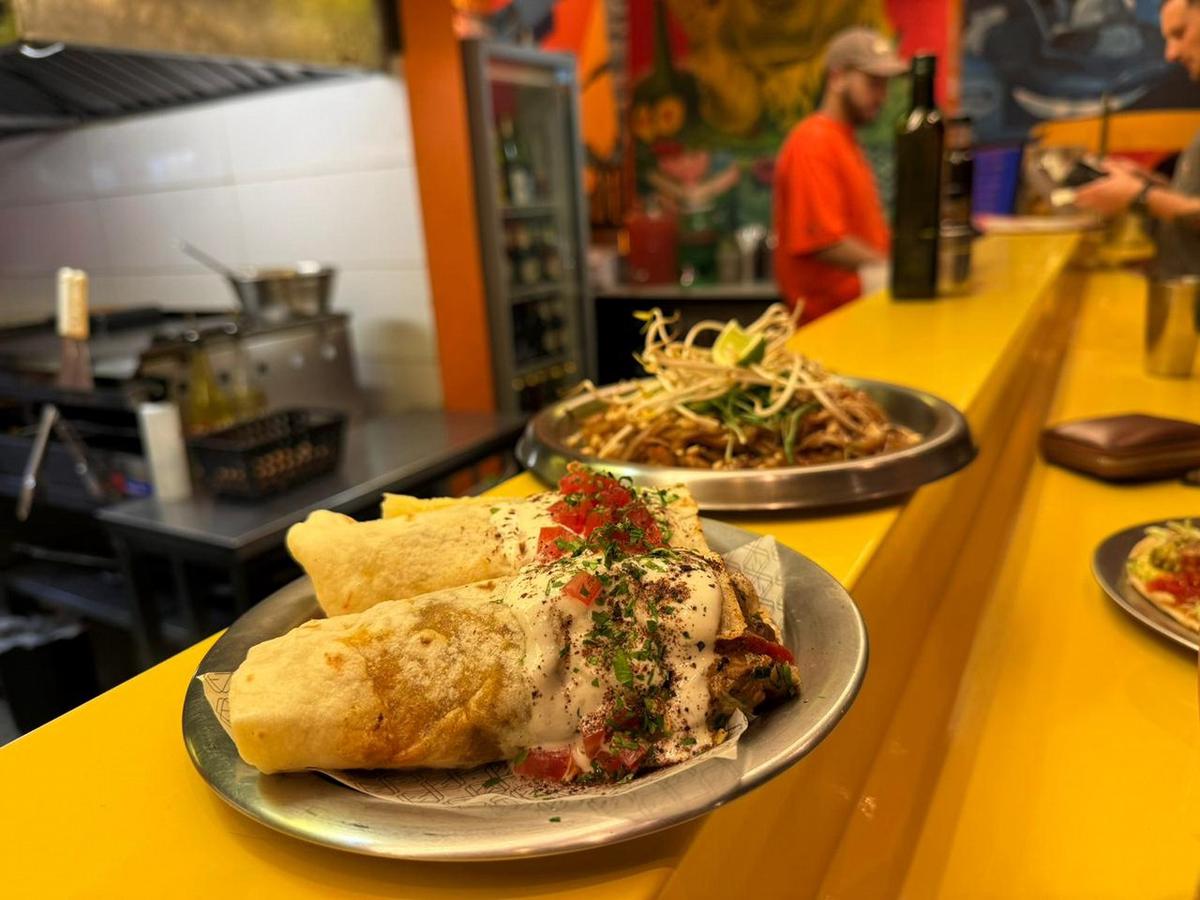 La carta es una declaración de principios. Tacos, quesadillas, pad thai, baos, falafel, kebabs, burritos y platos que combinan culturas sin pedir permiso conviven en un menú pensado para el disfrute inmediato. Todo se prepara a la vista, en una cocina pequeña pero intensamente activa, donde woks encendidos y movimientos sincronizados marcan el ritmo del lugar.
