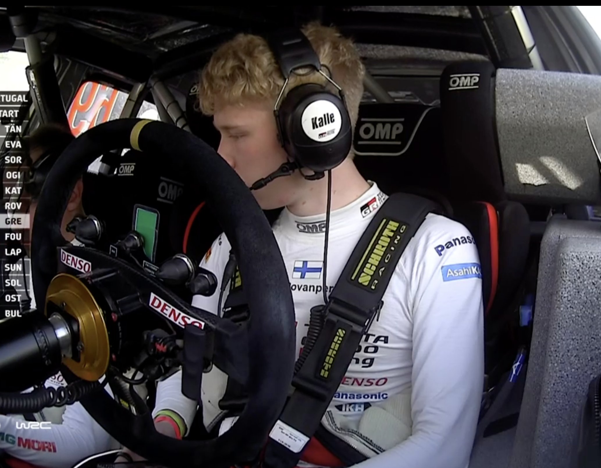 Las cámaras del WRC mostraron a Rovanperä conduciendo su Yaris WRC en la ruta con los auriculares puestos y el buzo atado a la cintura en el momento en que debía comenzar la etapa de Amarante.