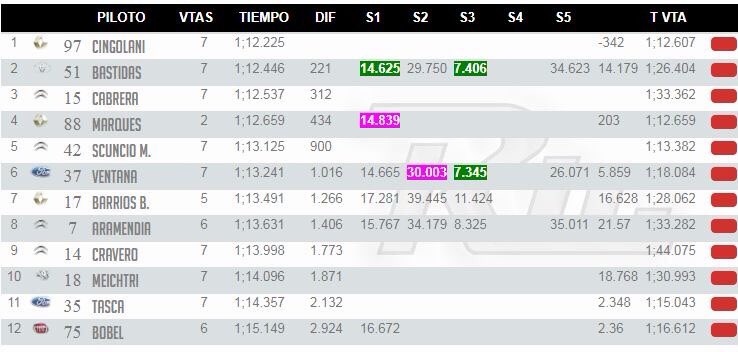Tomás Cingolani se llevó la pole en la tarde inestable de Río Cuarto donde la amenaza de lluvia es constante. Se clasificó con piso seco y marcó 1’12”225/1000 para llevarse los tres puntos en juego, lo que le valió pasar a dominar el campeonato con 192 puntos.