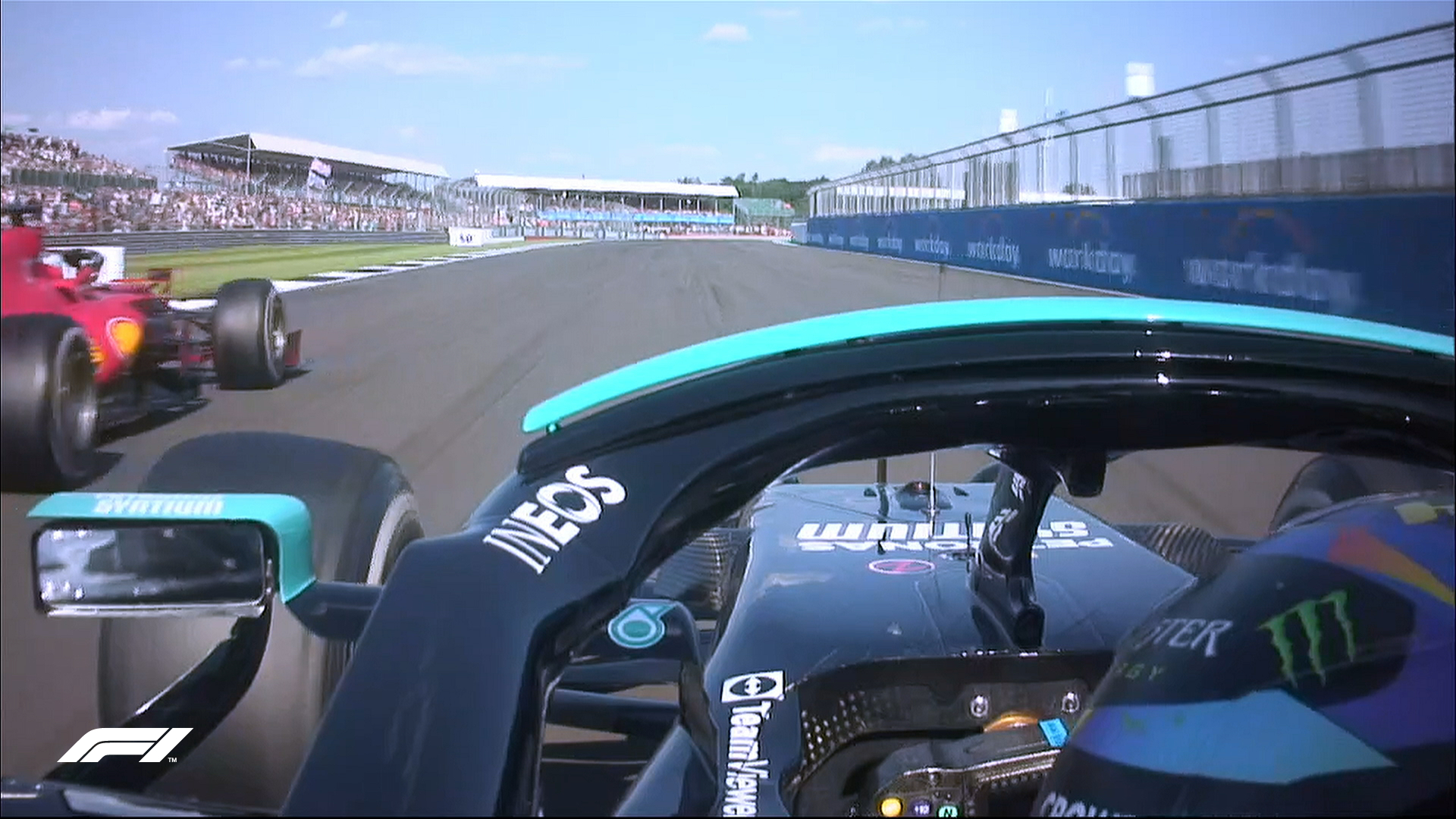 Hamilton y Verstappen habían peleado espectacularmente durante la primera mitad de la vuelta del Gran Premio, pero hicieron contacto en Copse cuando Hamilton intentó pasar por el interior en la curva de tránsito muy veloz, con Verstappen saliendo despedido con fuerza hacia las barreras y fuera de la carrera y Hamilton recibiendo una penalización de 10 segundos por la colisión.