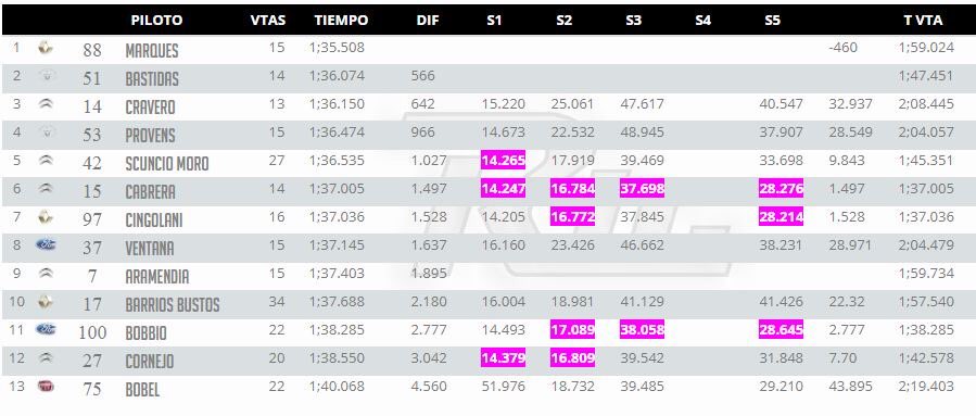 23/10/2020 | 13:14 | El riocuartense se sintió cómodo en el primer contacto con la pista y fue el mejor. Exequiel Bastidas (Corolla) y Matías Cravero (C4) completaron los tres mejores lugares.