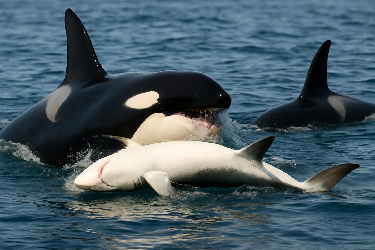 Un grupo de orcas en el Golfo de California, conocido como el grupo de orcas Moctezuma, ha desarrollado una técnica de caza sorprendentemente precisa para atrapar a los tiburones blancos jóvenes. Este método consiste en voltear a los tiburones de espaldas, lo que les provoca una parálisis temporal y les permite extraer sus hígados, que son ricos en nutrientes. Este comportamiento, filmado y documentado por biólogos marinos, pone de manifiesto un nivel de inteligencia y aprendizaje social que sugiere una transmisión cultural de tácticas de caza entre las orcas.