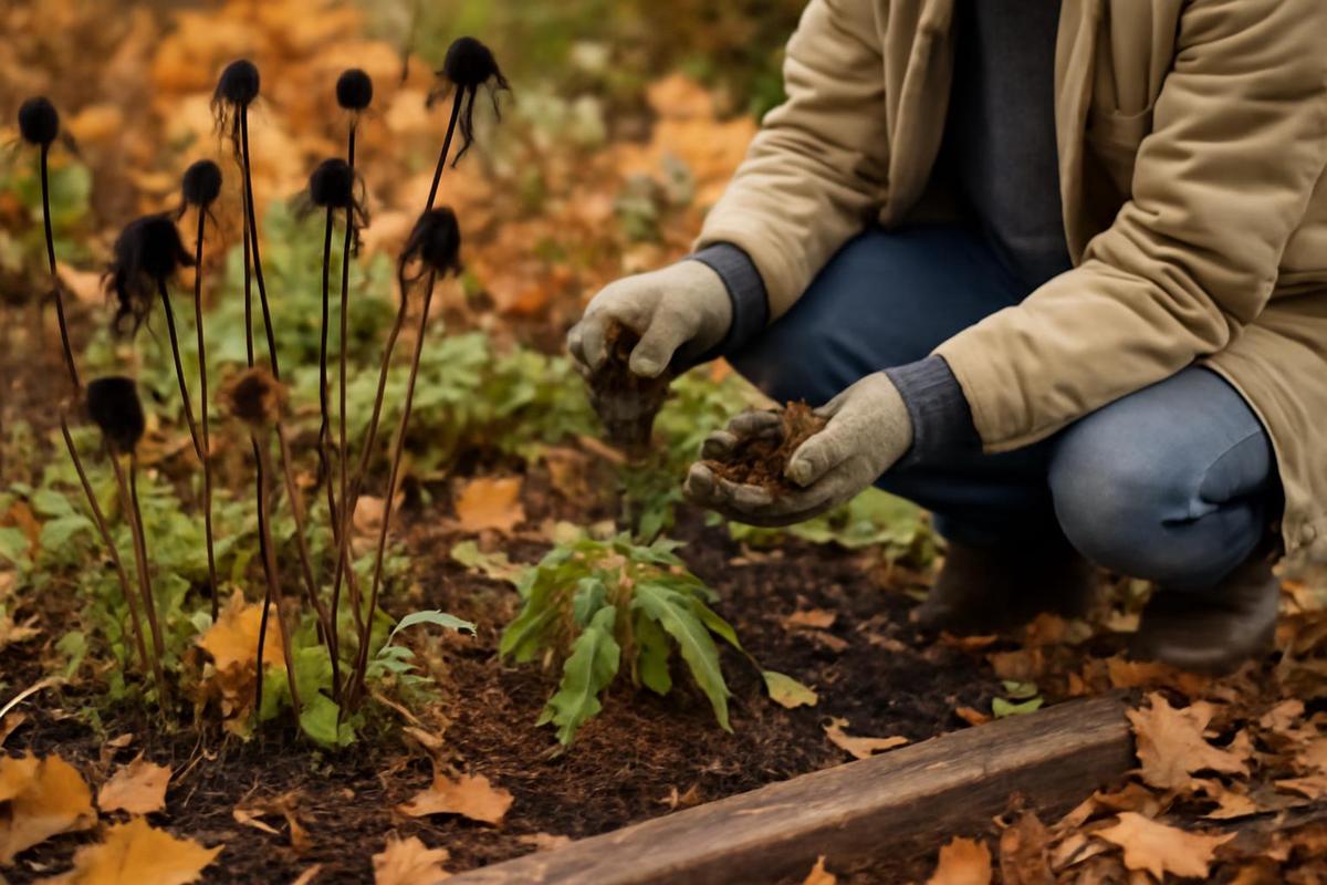 Además, descuidar el acolchado o fertilizar demasiado tarde en la temporada puede dejar a las perennes vulnerables justo cuando más necesitan protección. Morton indica que el mejor momento para acolchar es "una vez que el suelo se ha enfriado, o cuando se siente notablemente frío al tacto, generalmente alrededor de 10-13 °C, a unos pocos centímetros de profundidad". Este momento ayuda a aislar las raíces sin atrapar el exceso de calor. Explica que el acolchado de otoño actúa como una manta acogedora, protegiendo el suelo desnudo de las temperaturas heladas y la pérdida de humedad. Recomienda utilizar materiales naturales como hojas trituradas, paja o corteza, y evitar fertilizantes ricos en nitrógeno, que pueden desencadenar un nuevo crecimiento tierno que la helada dañará rápidamente.