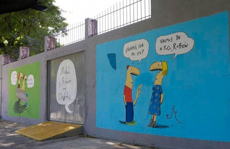 Se trata de viñetas que recrean los personajes “Mabel y Rubén”, la pareja emblemática de las historietas de Tute, que se encuentran plasmadas en 80 m² sobre un paredón ubicado en Marcelo T. de Alvear 653.