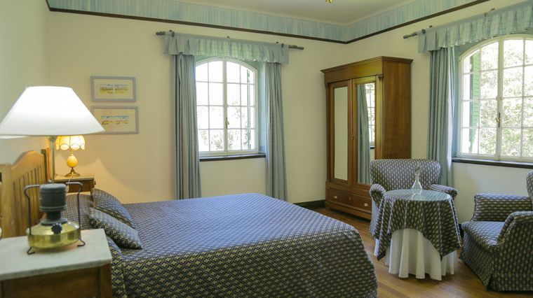 Las habitaciones, al igual que toda la casa, conservan intactos los detalles de época: pisos en madera, camas amplias, roperos con espejos, lámparas con apliques sillones y cortinas de telas suntuosas de techos a pisos.