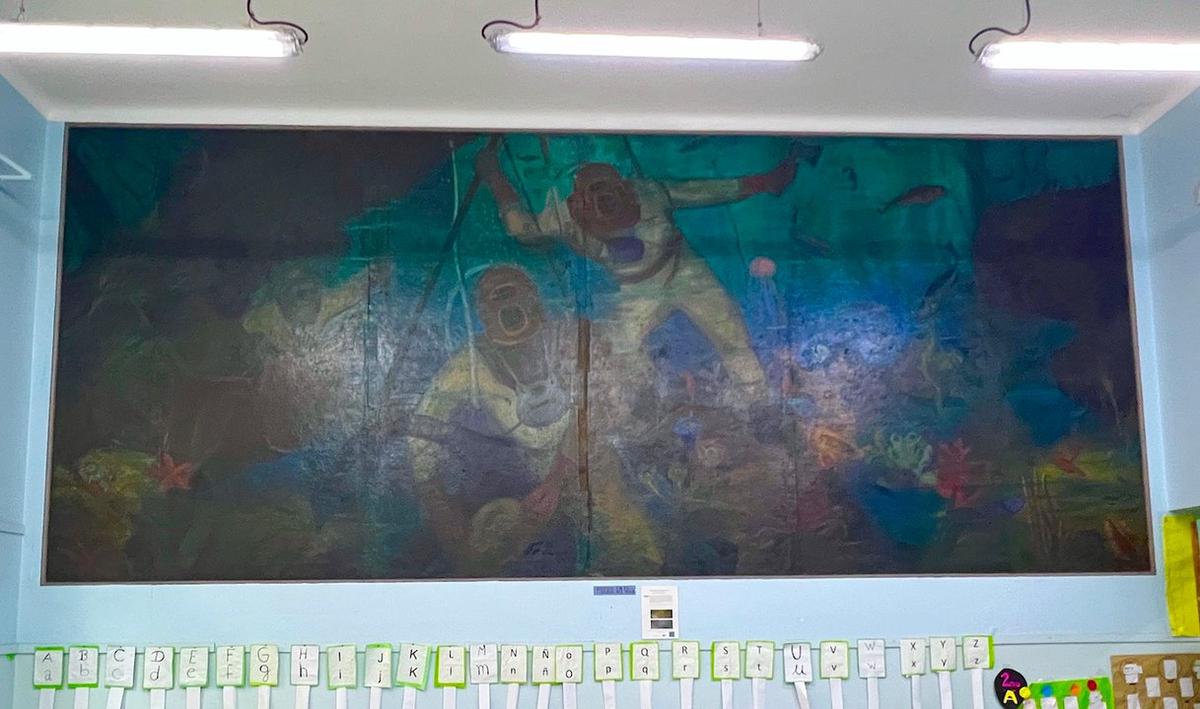 En una de las aulas de la Escuela Pedro de Mendoza, localizada en el histórico barrio de La Boca, un mural submarino cautiva a los estudiantes con una atmósfera onírica que trasciende la pintura convencional. Buzos en el fondo del mar, obra del destacado pintor Benito Quinquela Martín, ha sido restaurado recientemente como parte de un esfuerzo por preservar y valorar el patrimonio cultural de uno de los artistas más icónicos de la ciudad de Buenos Aires.