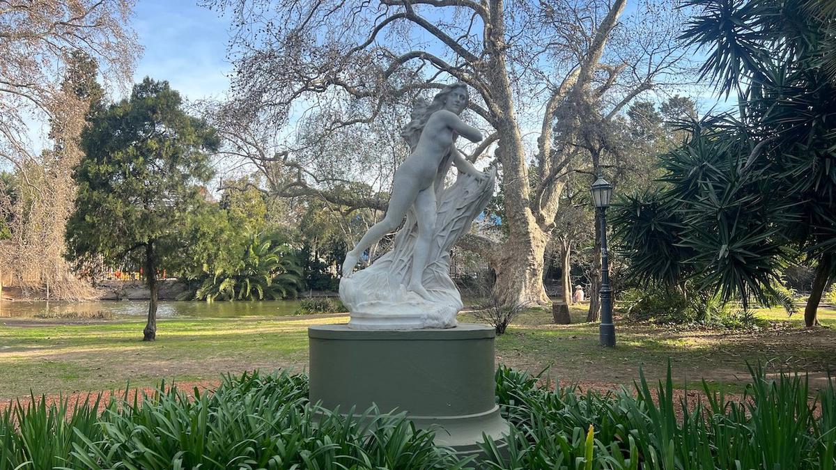 La escultura Diana fugitiva, también conocida como Siringa, del artista francés François Louis Virieux, lució en el espacio público porteño tras ser ubicada en la Plaza Sicilia, en diciembre de 2023, luego de décadas de traslados, restauraciones y actos de vandalismo.