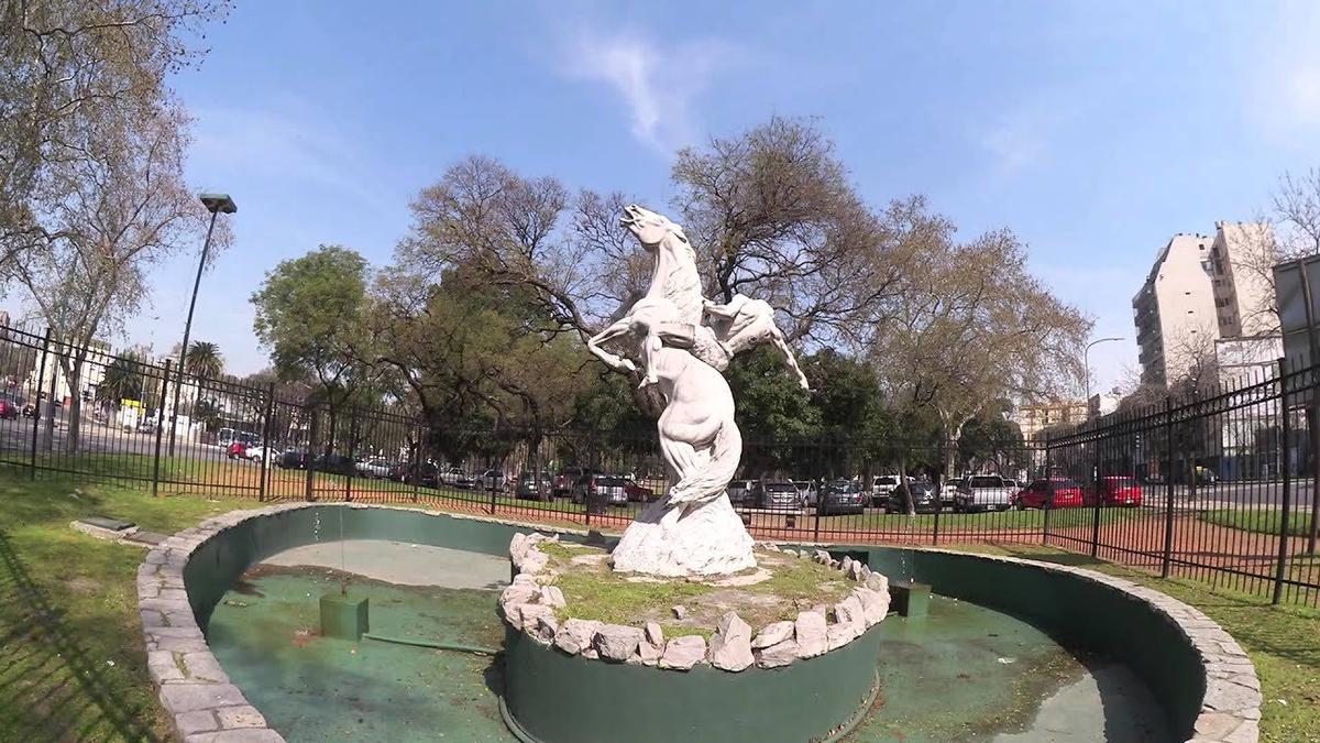 Desde su llegada a Buenos Aires en 1912 como donación, el recorrido del monumento ha sido tumultuoso. Inicialmente se instaló en la Plaza Miserere antes de ser trasladado a la Plaza Garay en 1928, debido a la colocación de una nueva obra, el monumento a Bernardino Rivadavia.