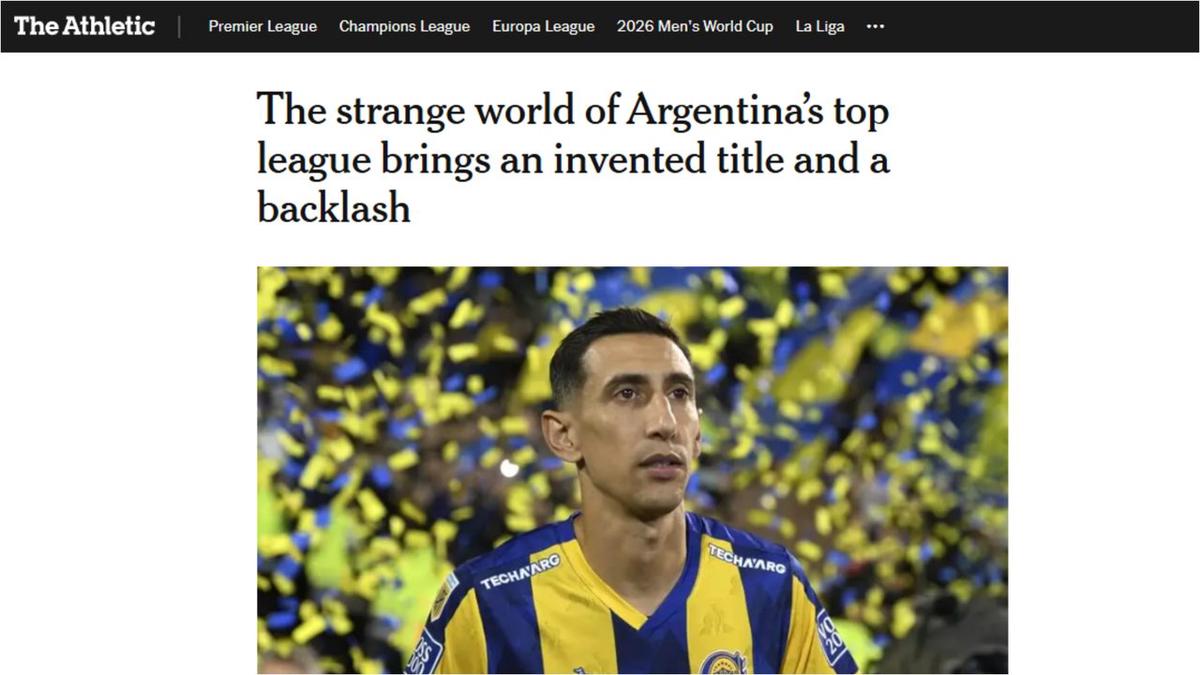 El escándalo desatado por la creación administrativa del título de "Campeón de Liga 2025" para Rosario Central alcanzó repercusión internacional. El portal The Athletic, asociado a The New York Times, dedicó un extenso artículo a la controversia, exponiendo el supuesto intento de fraude de la AFA para sancionar a los clubes disidentes.