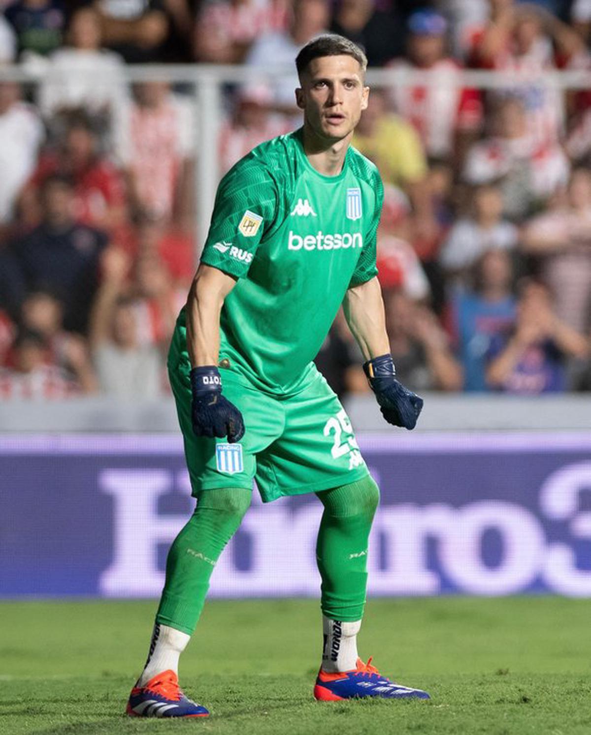Facundo Cambeses, arquero de Racing, realizó una notable atajada.