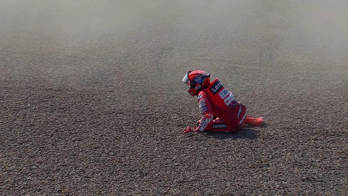 El impacto del español contra el suelo fue violento: se levantó tomándose el hombro derecho y abandonó la pista con gestos de dolor. Las imágenes recordaron su caída en 2022 en el mismo circuito, cuando una violenta maniobra durante el warm up lo dejó con problemas de visión doble y puso en riesgo su carrera.