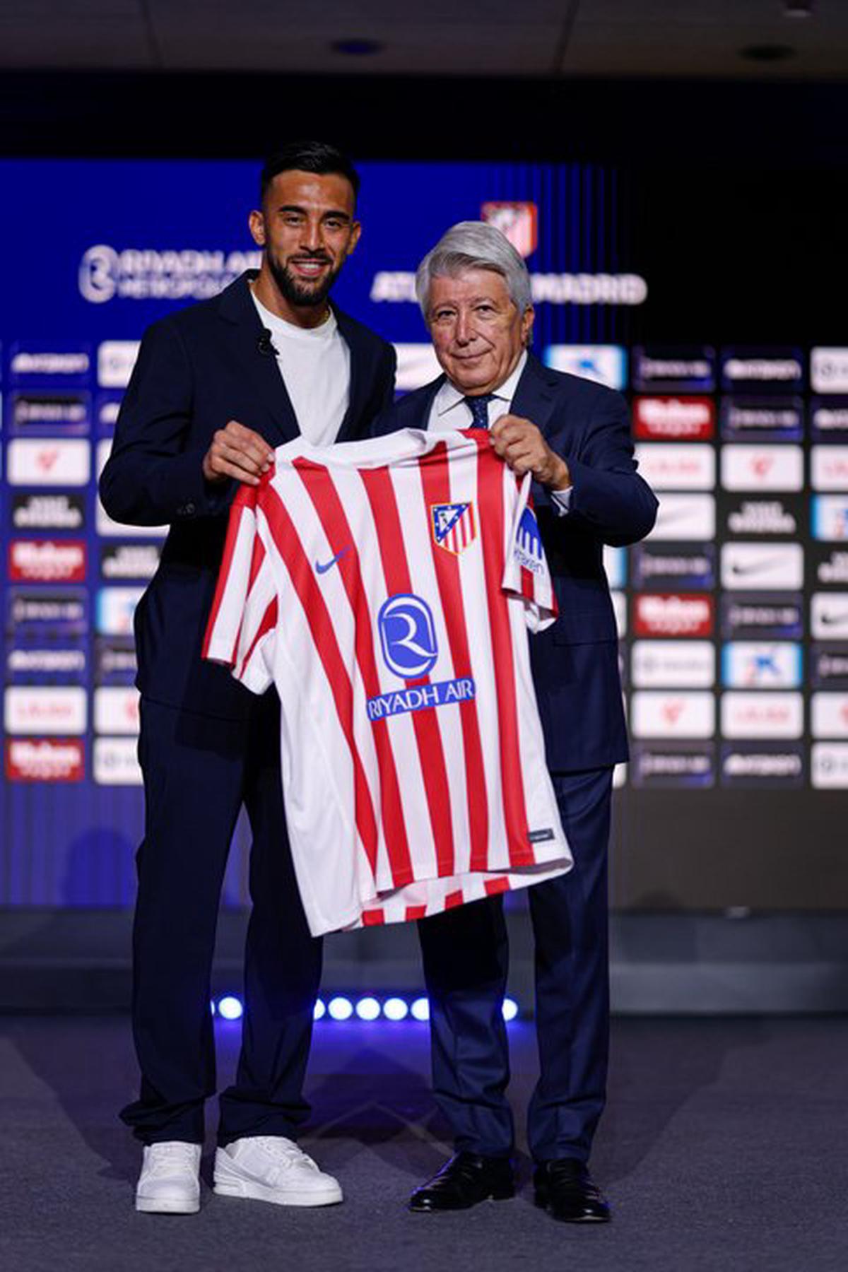 Este viernes tras su participación en las últimas dos fechas de Eliminatorias Sudamericanas para el Mundial de Estados Unidos, México y Canadá, el oriundo de Escobar fue presentado en el estadio Civitas Metropolitano junto al presidente de la institución madrileña, Enrique Cerezo.